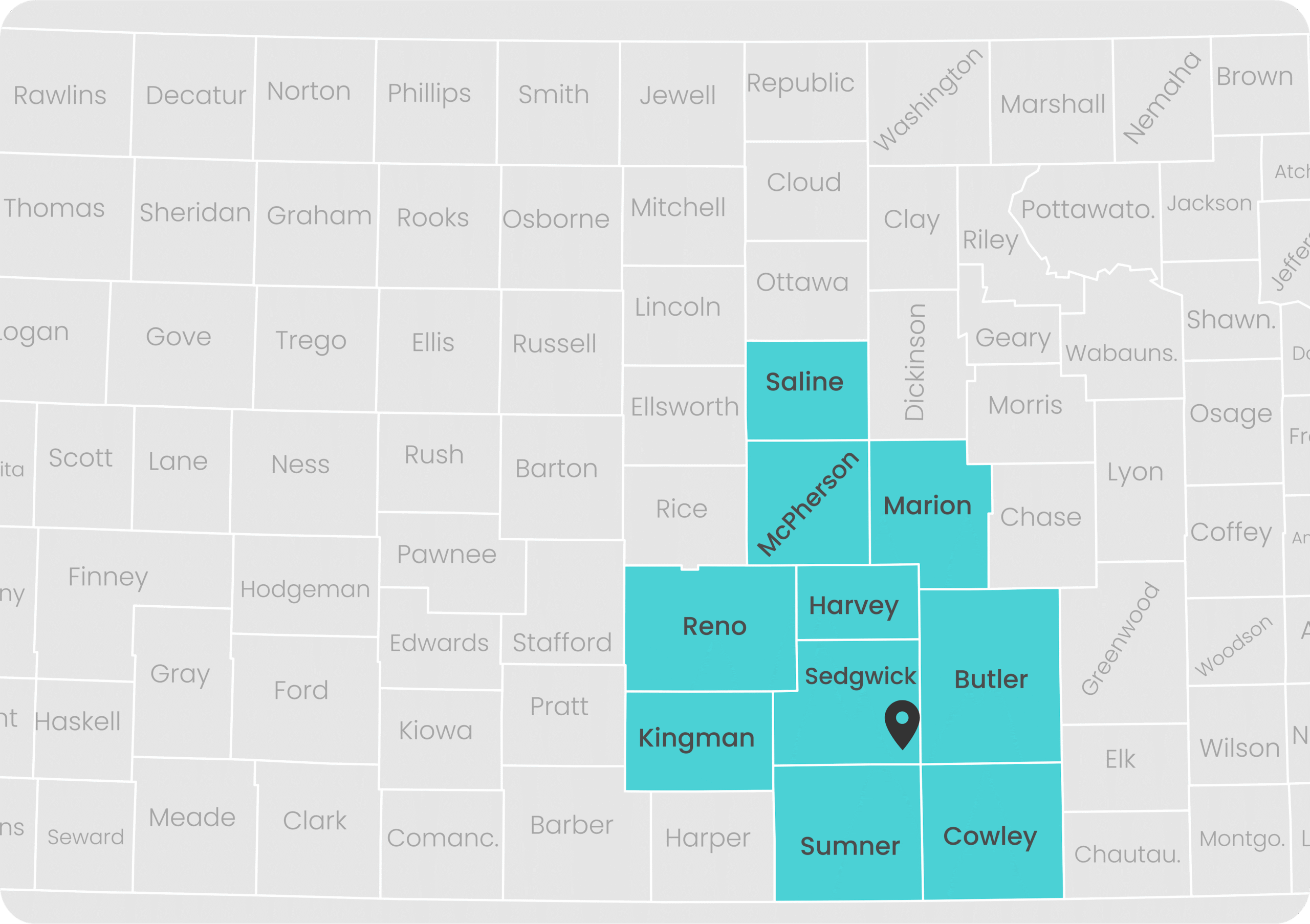 While we are always available to help you understand your care options, we are honored to serve individuals and families in the following Kansas counties and more, within approximately a 200-mile radius of our Derby, KS office: